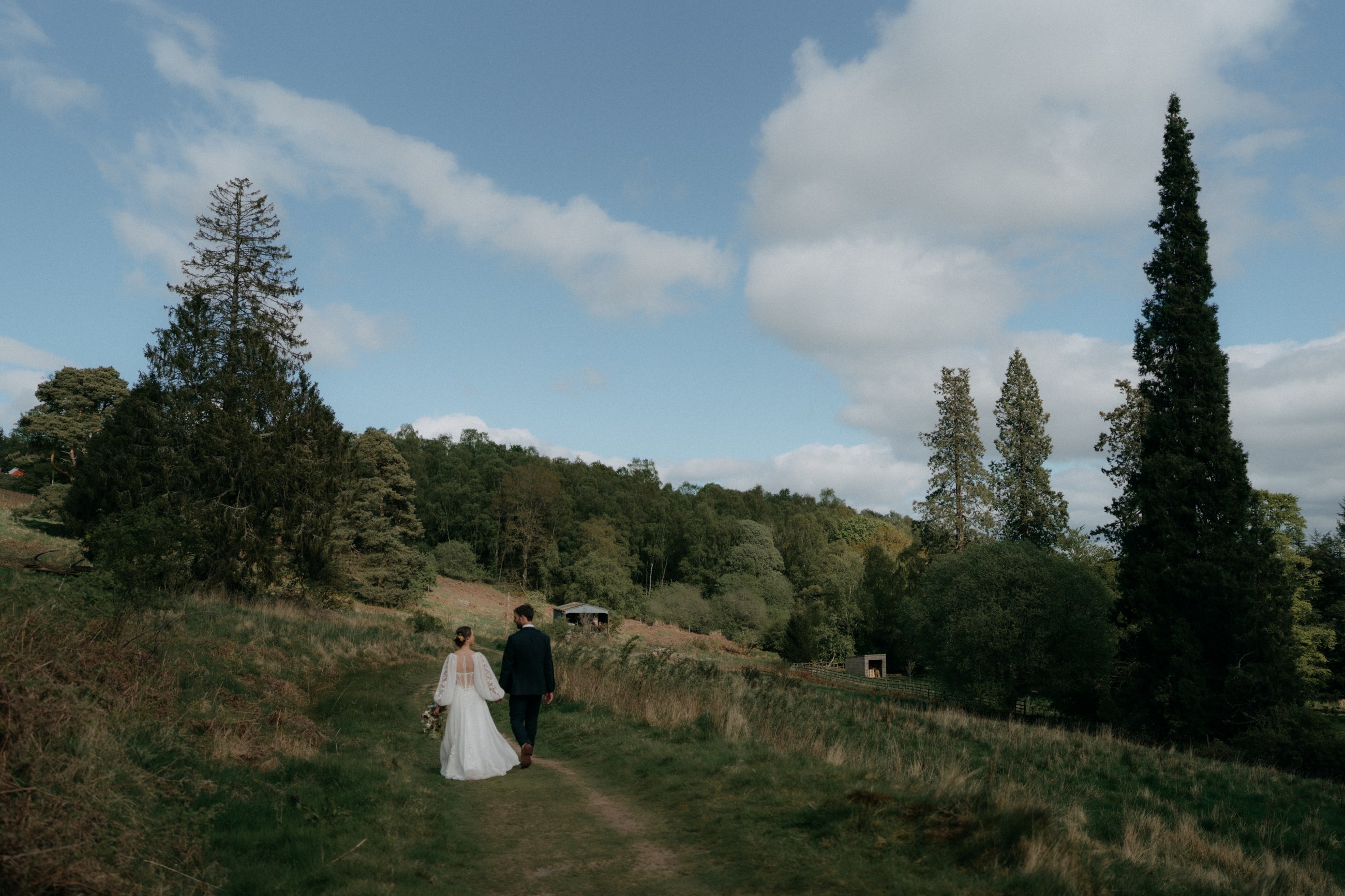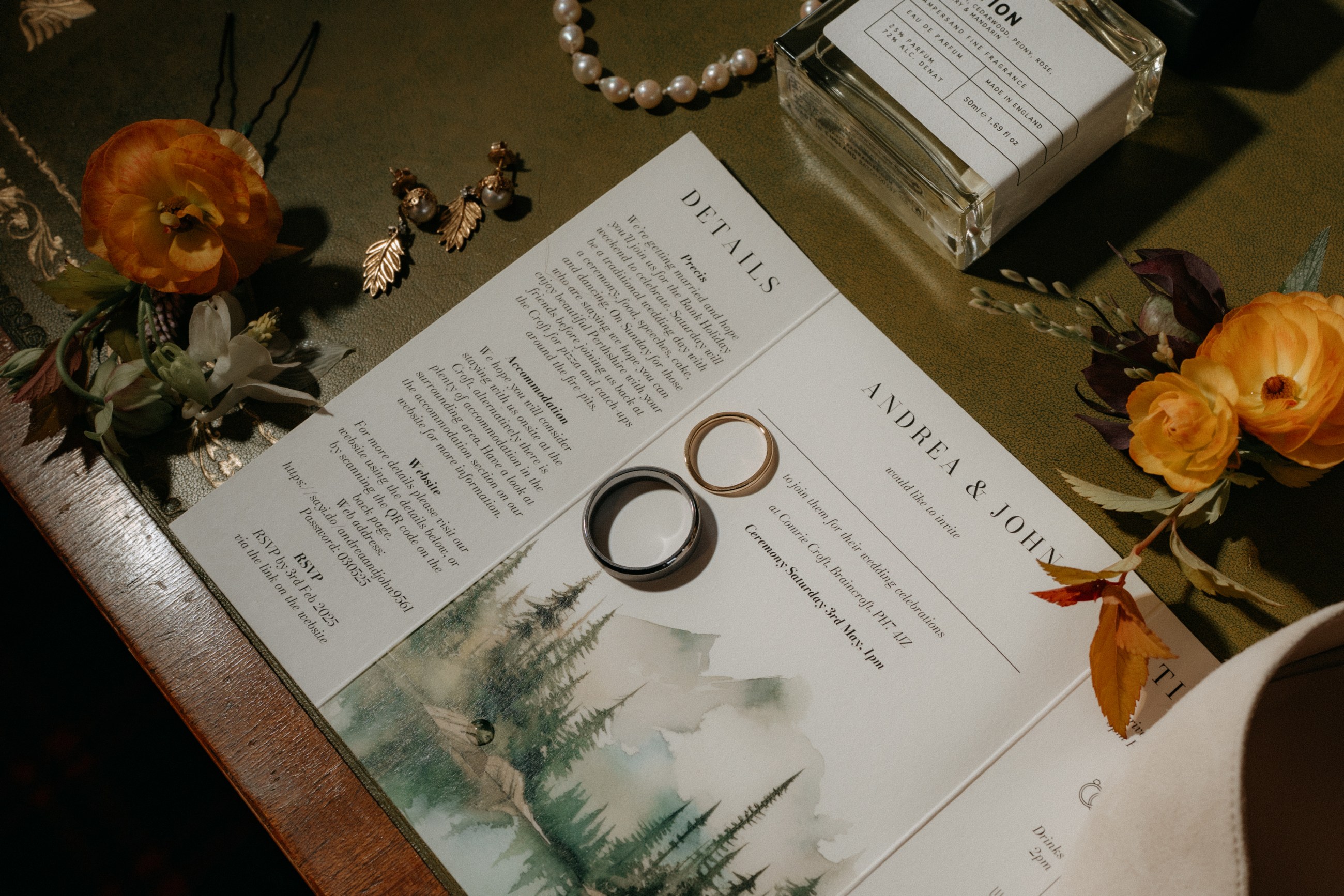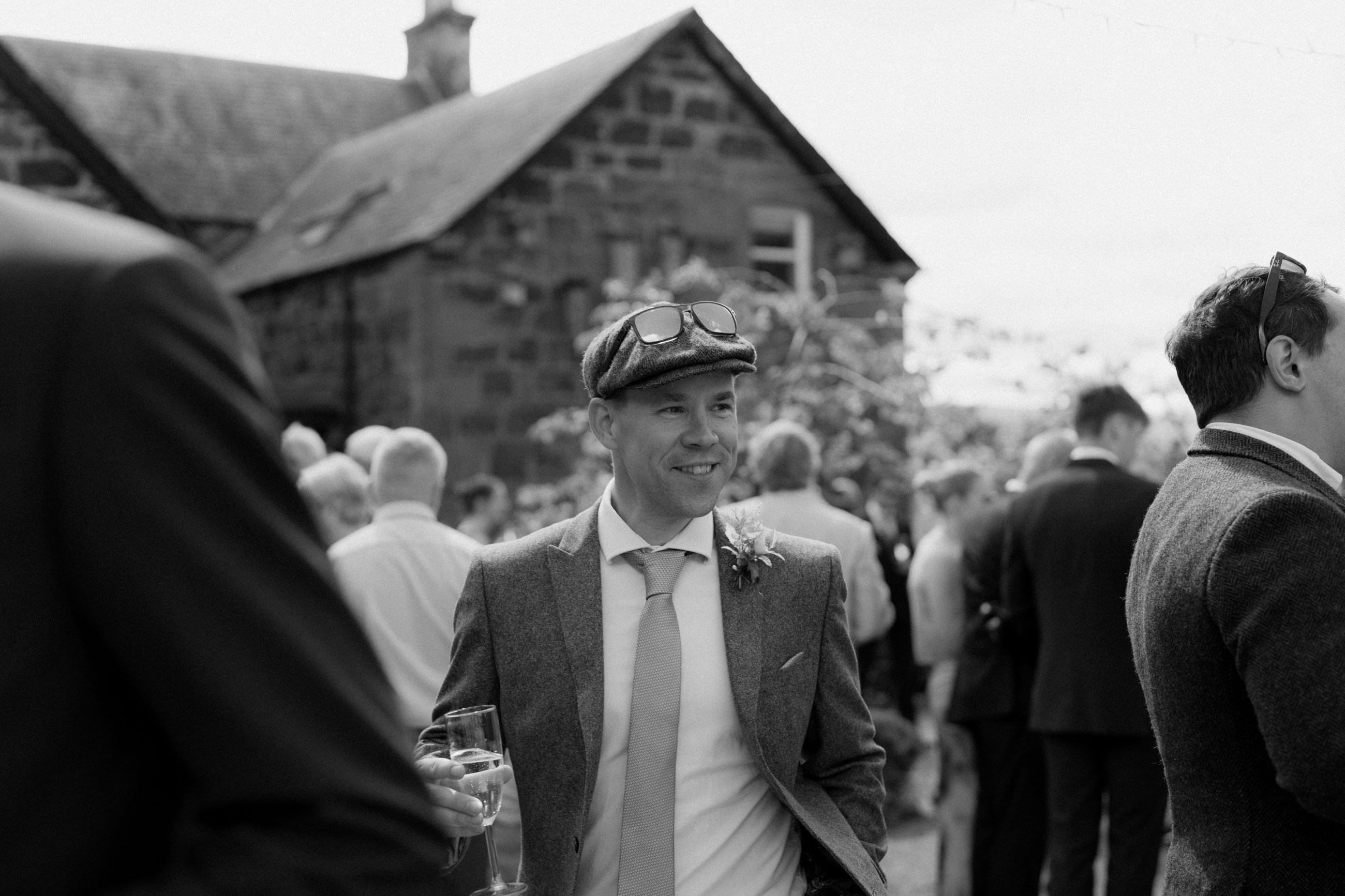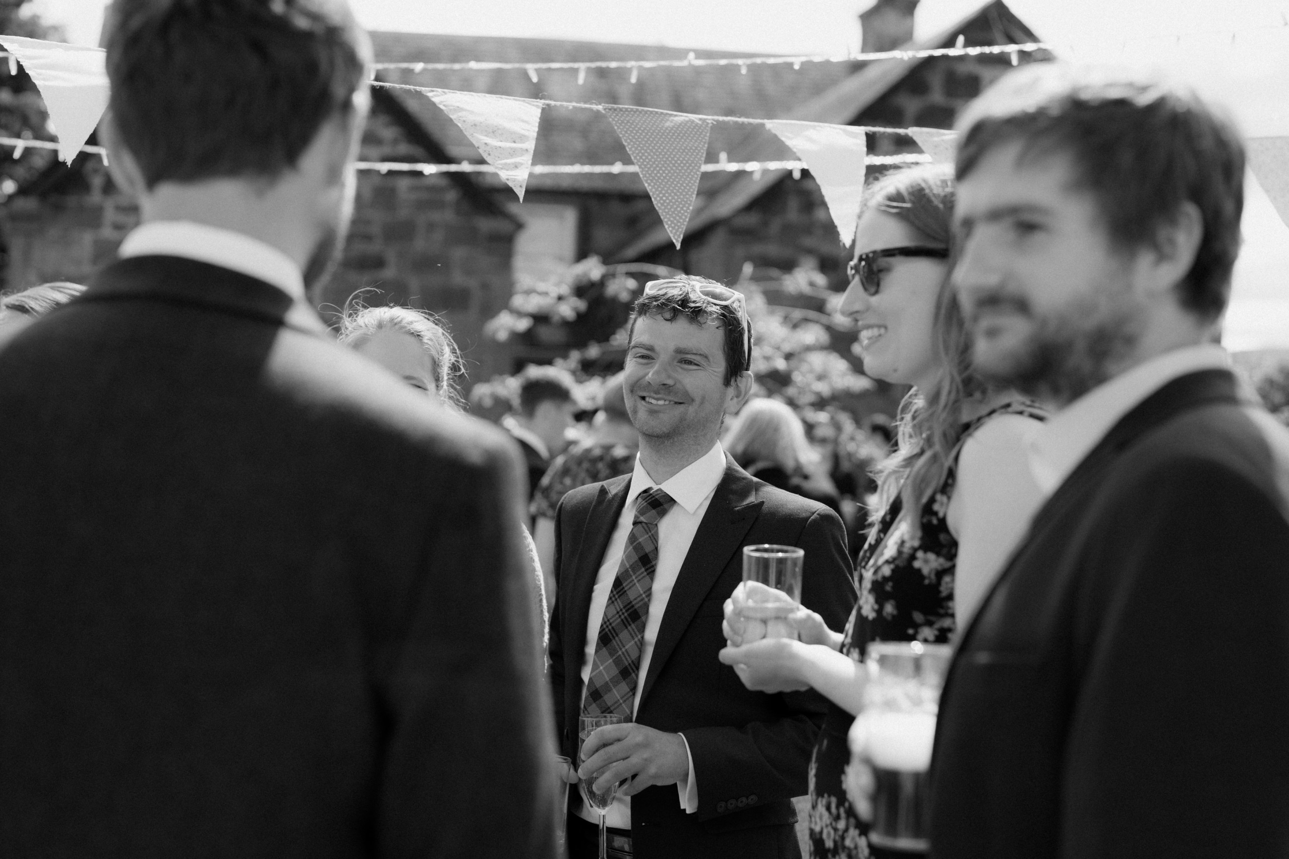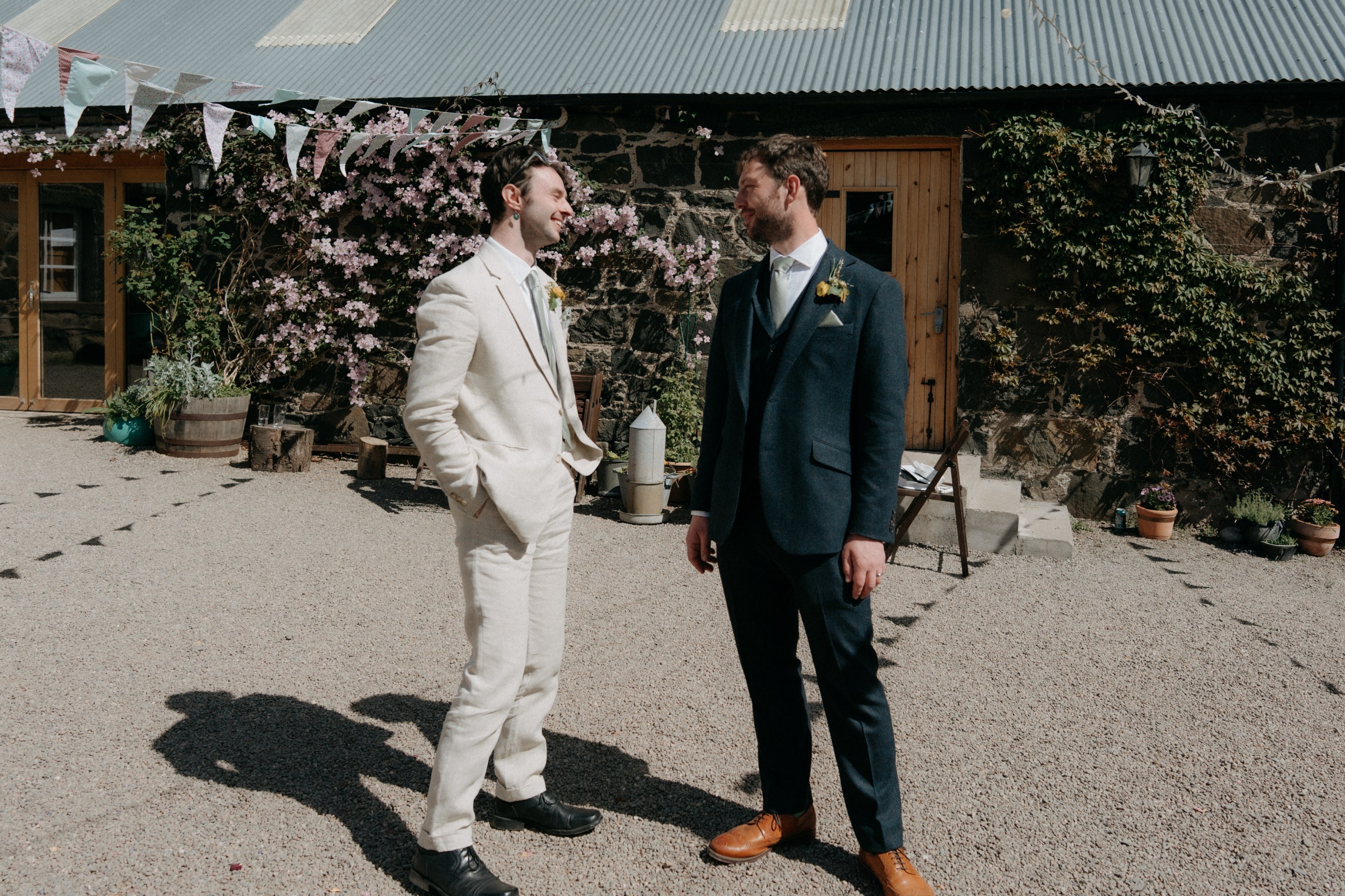 Sunshine, a courtyard ceremony, and a seriously beautiful old Jag — Andrea & John’s wedding at Comrie Croft was effortlessly elegant from start to finish.