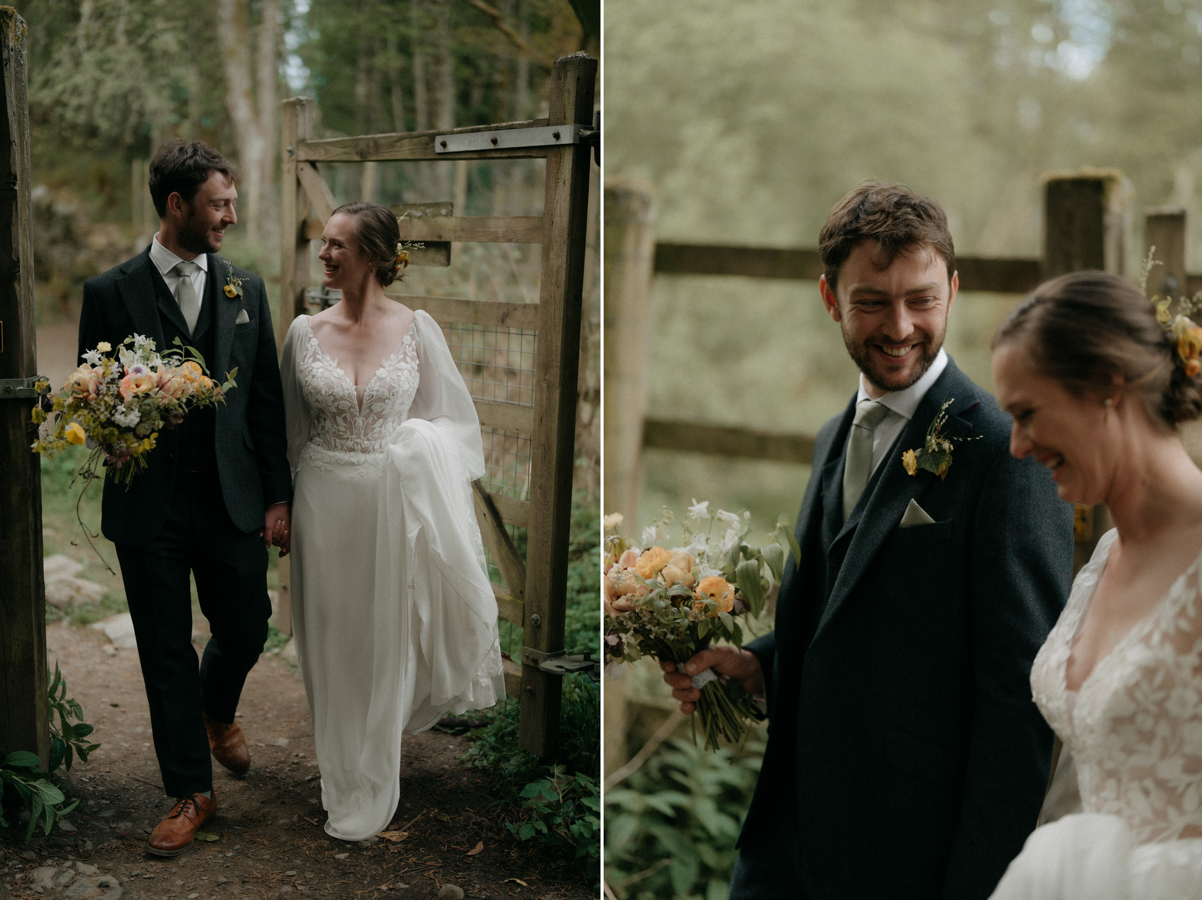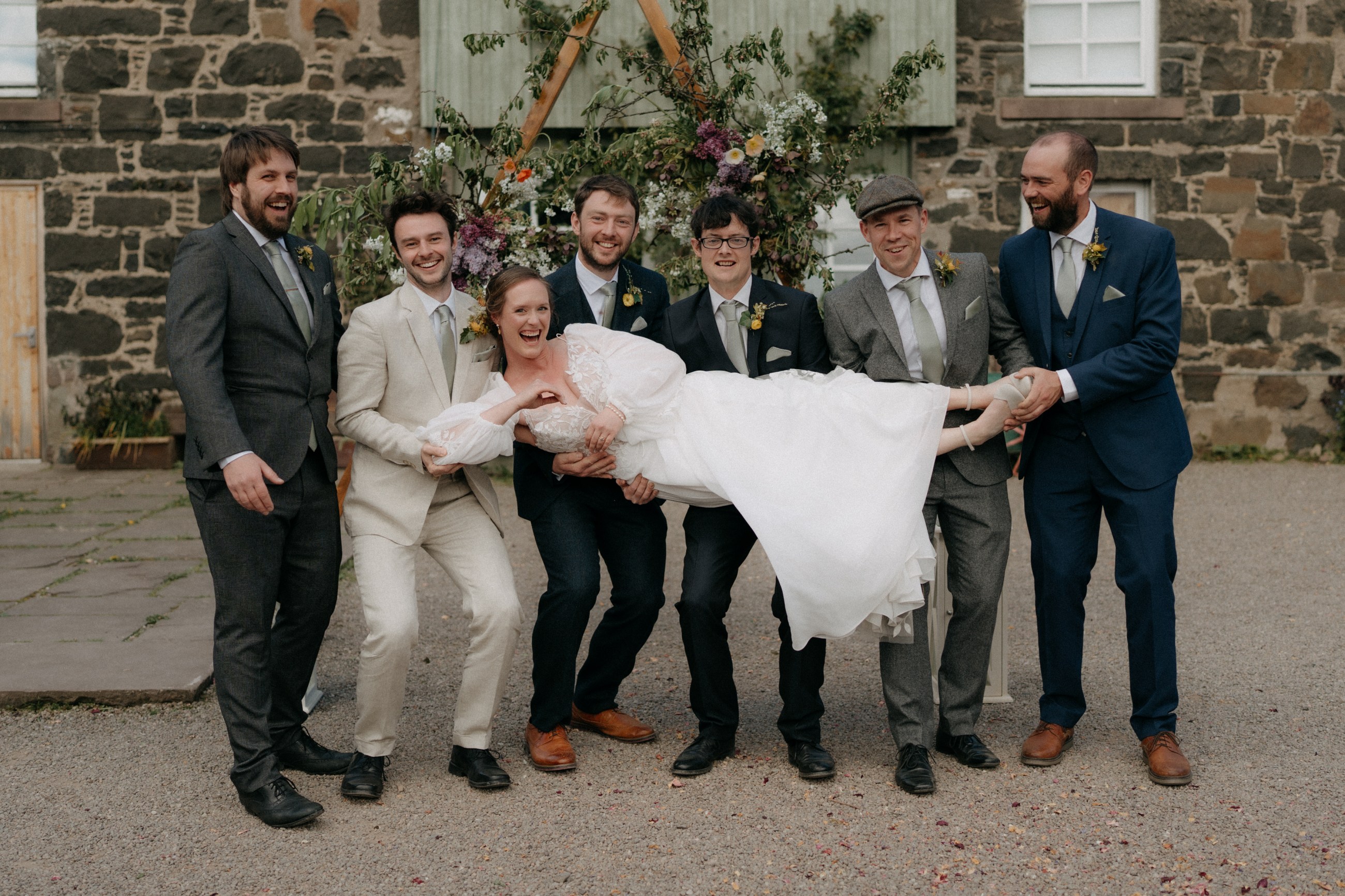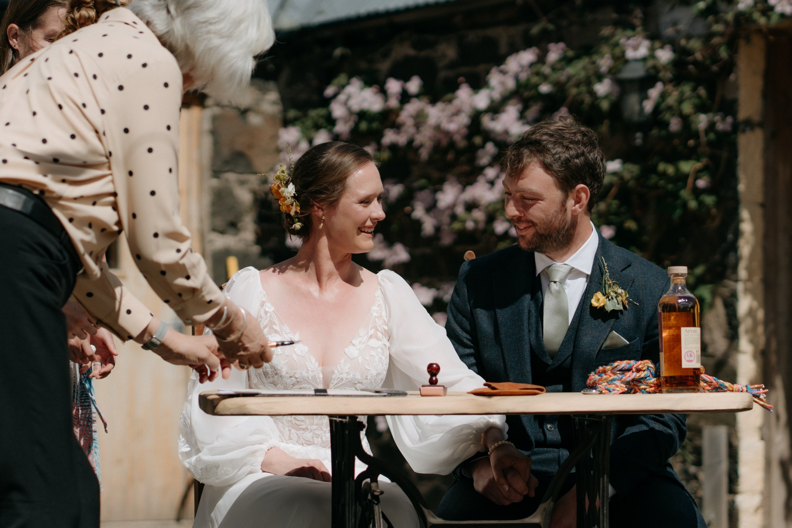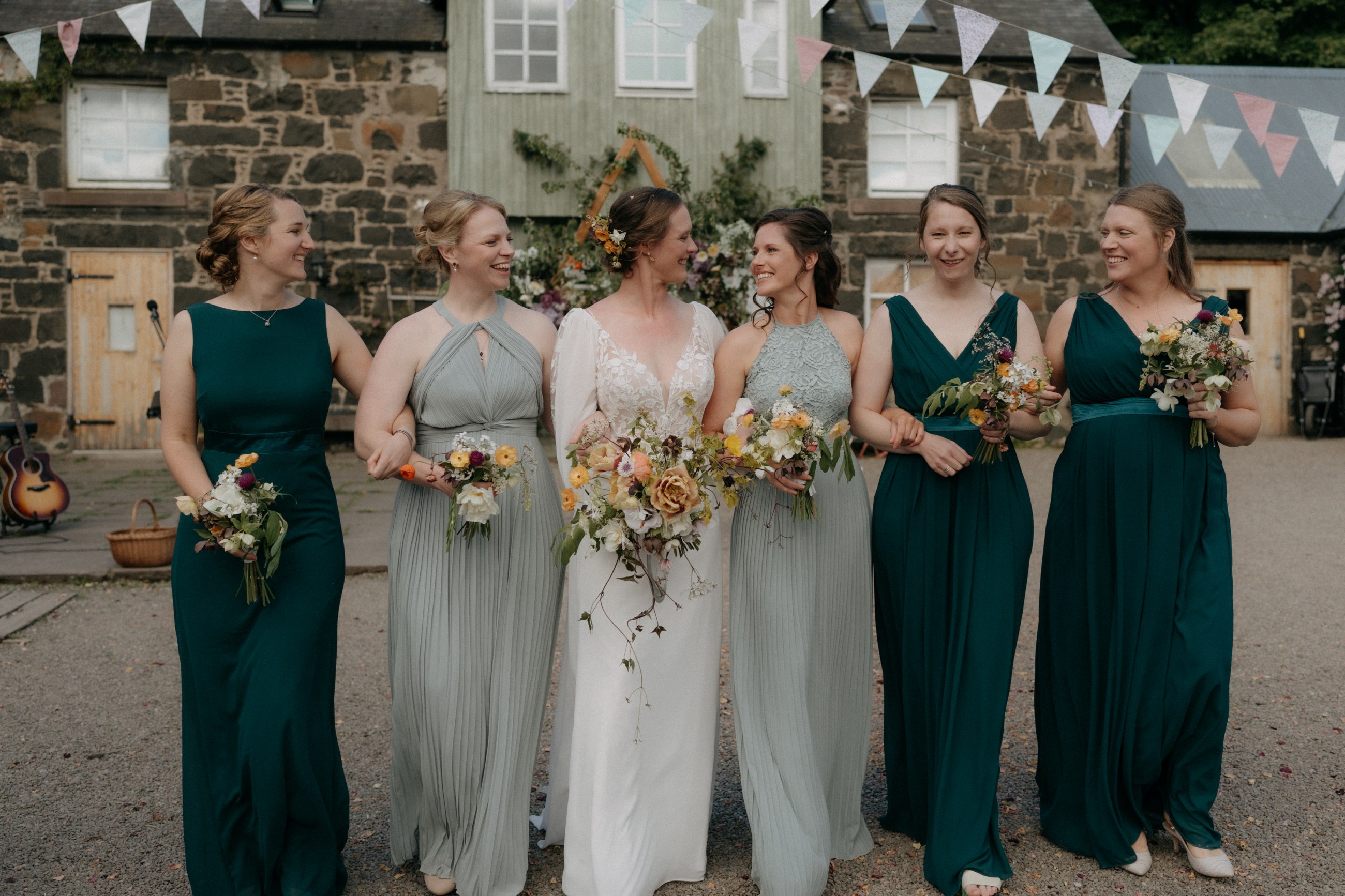 Sunshine, a courtyard ceremony, and a seriously beautiful old Jag — Andrea & John’s wedding at Comrie Croft was effortlessly elegant from start to finish.
