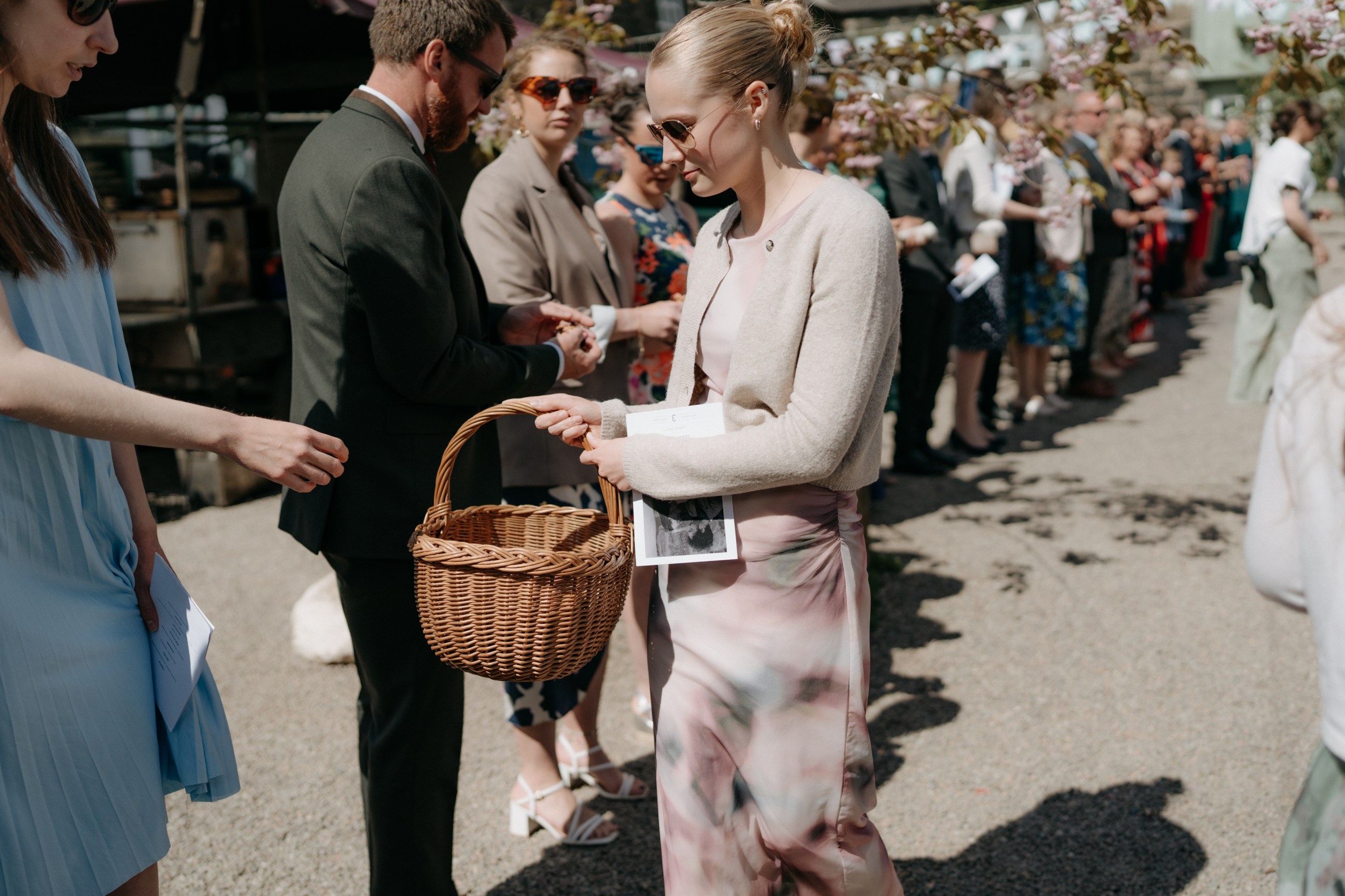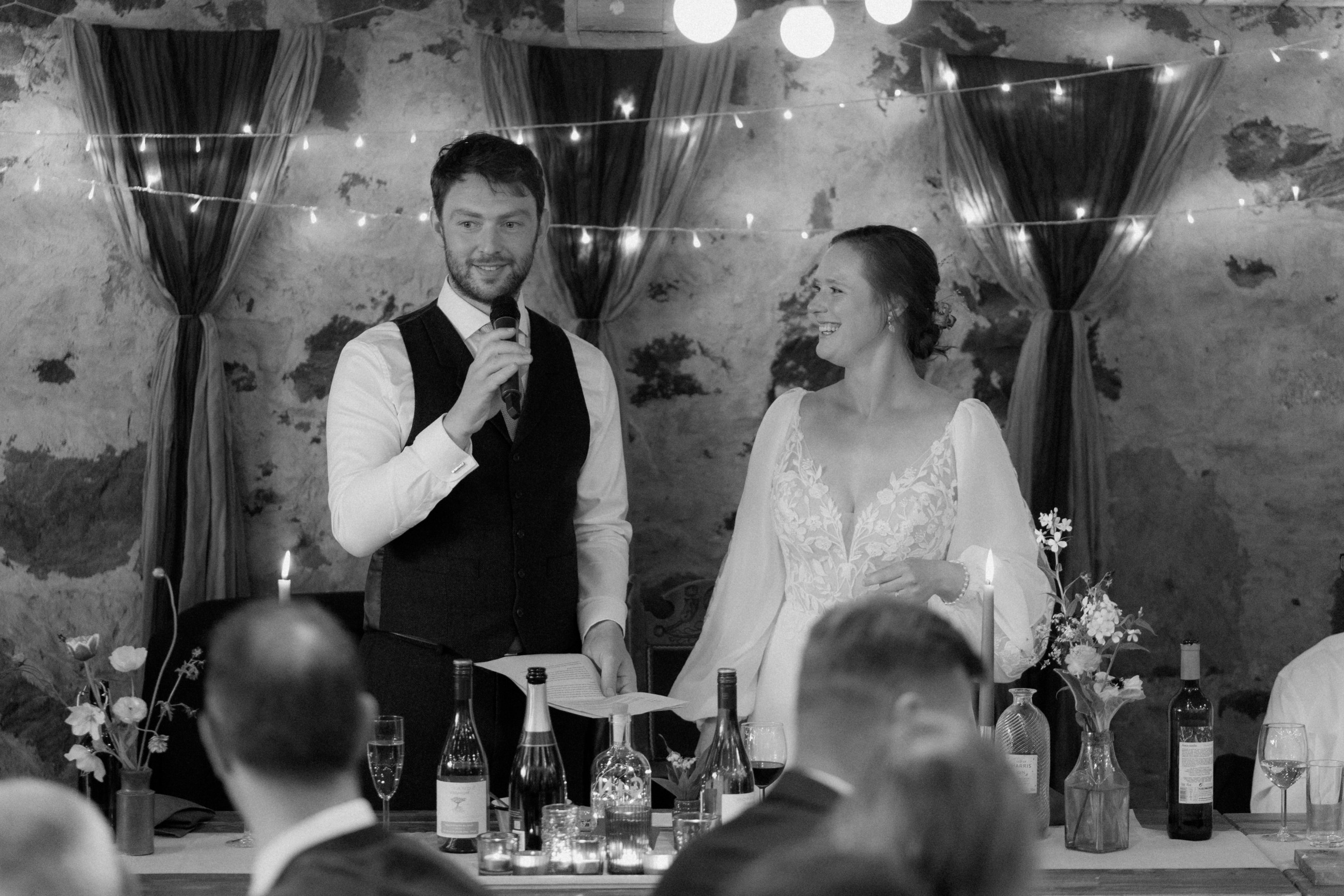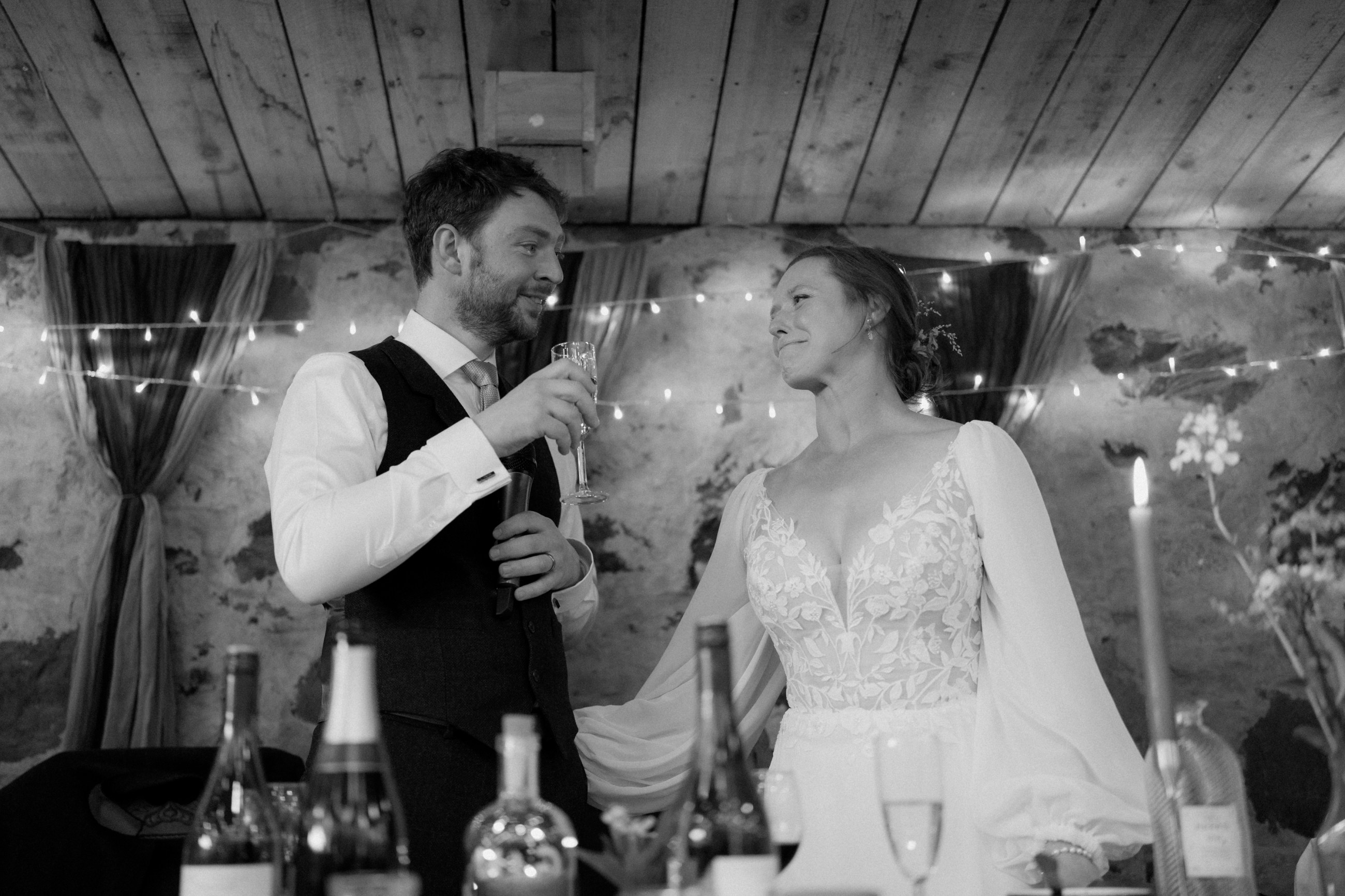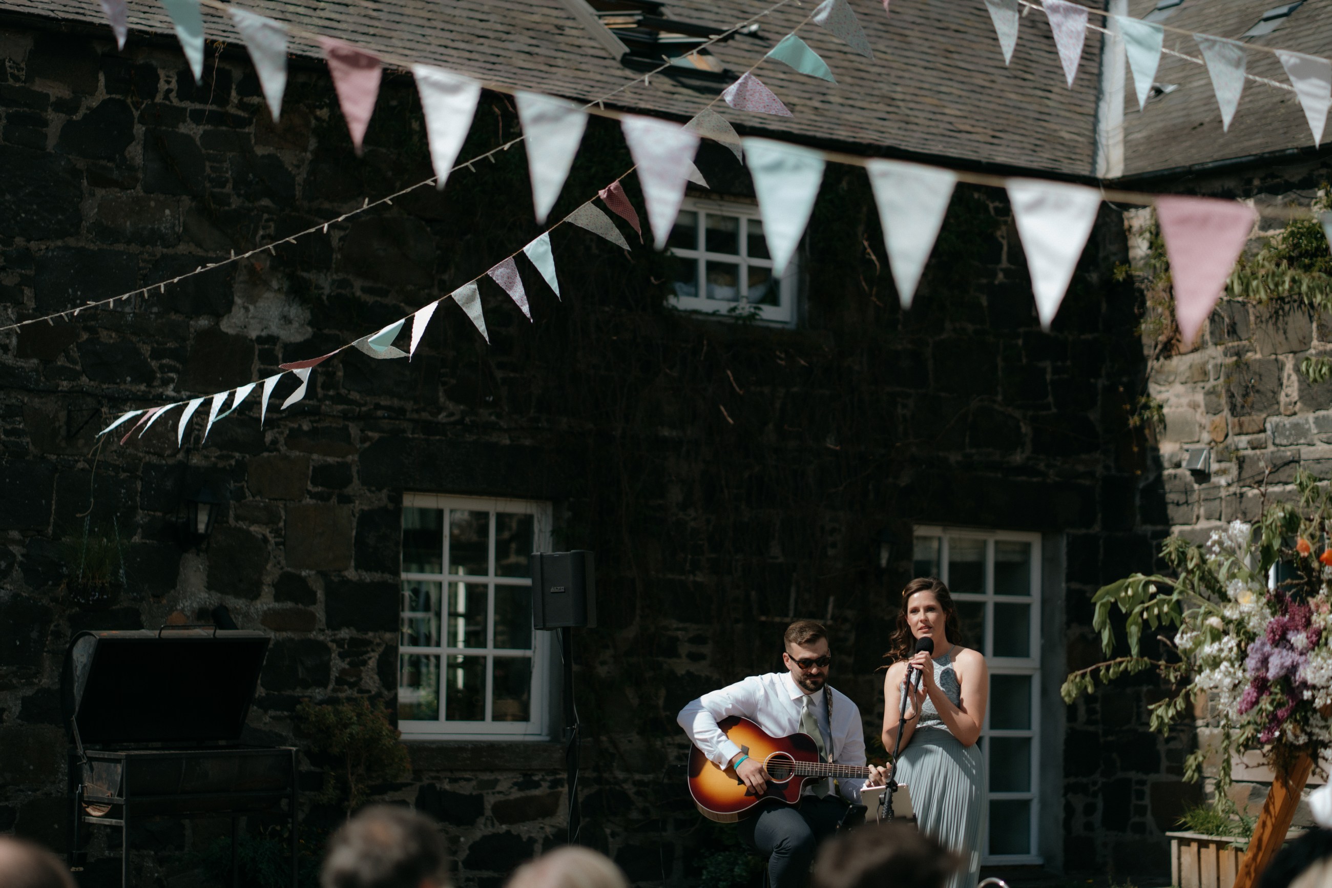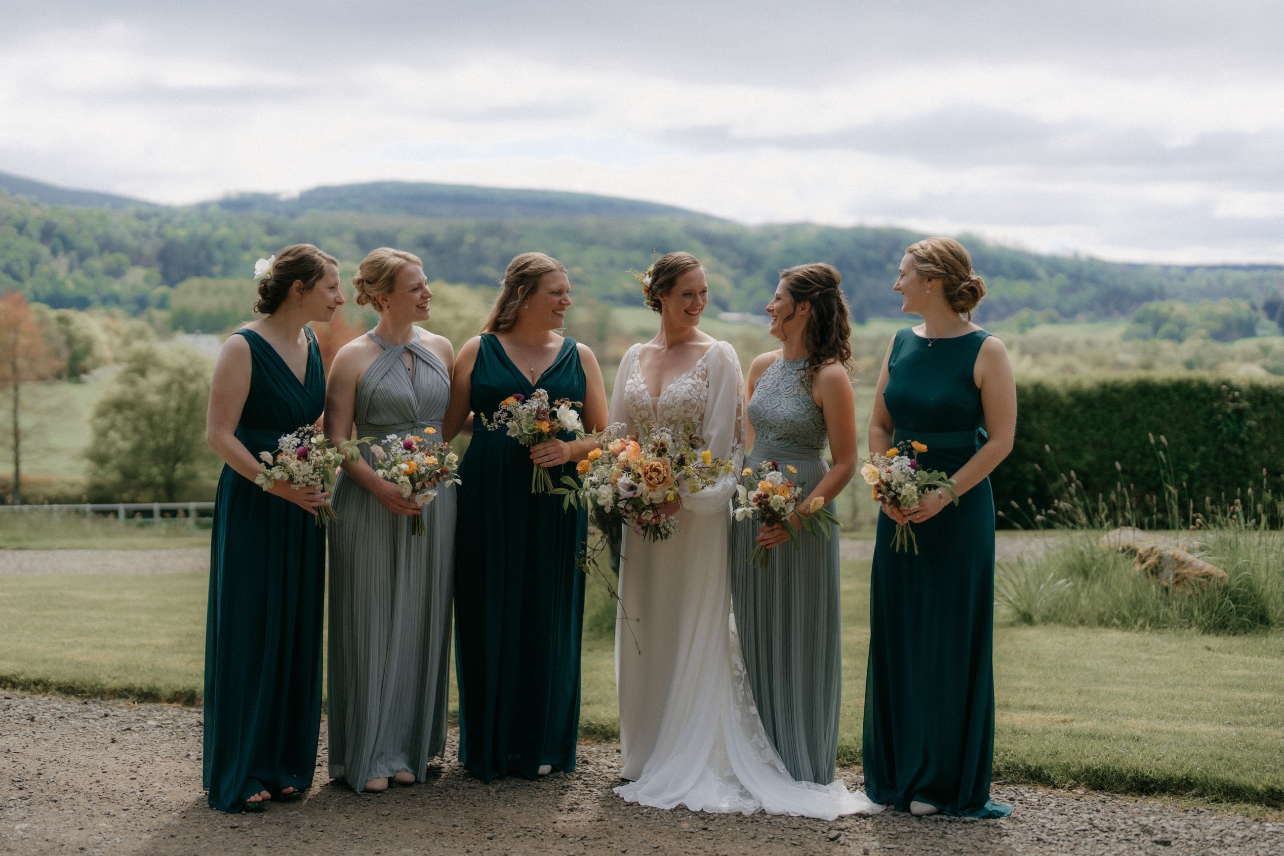 Sunshine, a courtyard ceremony, and a seriously beautiful old Jag — Andrea & John’s wedding at Comrie Croft was effortlessly elegant from start to finish.